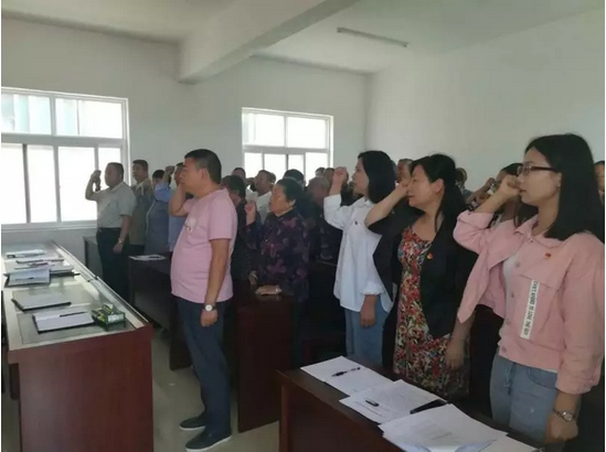 活动中,与会人员面向党旗庄严宣誓,重温入党誓词,表达“不忘初心、牢记使命、对党忠诚坚定”的信念与决心。