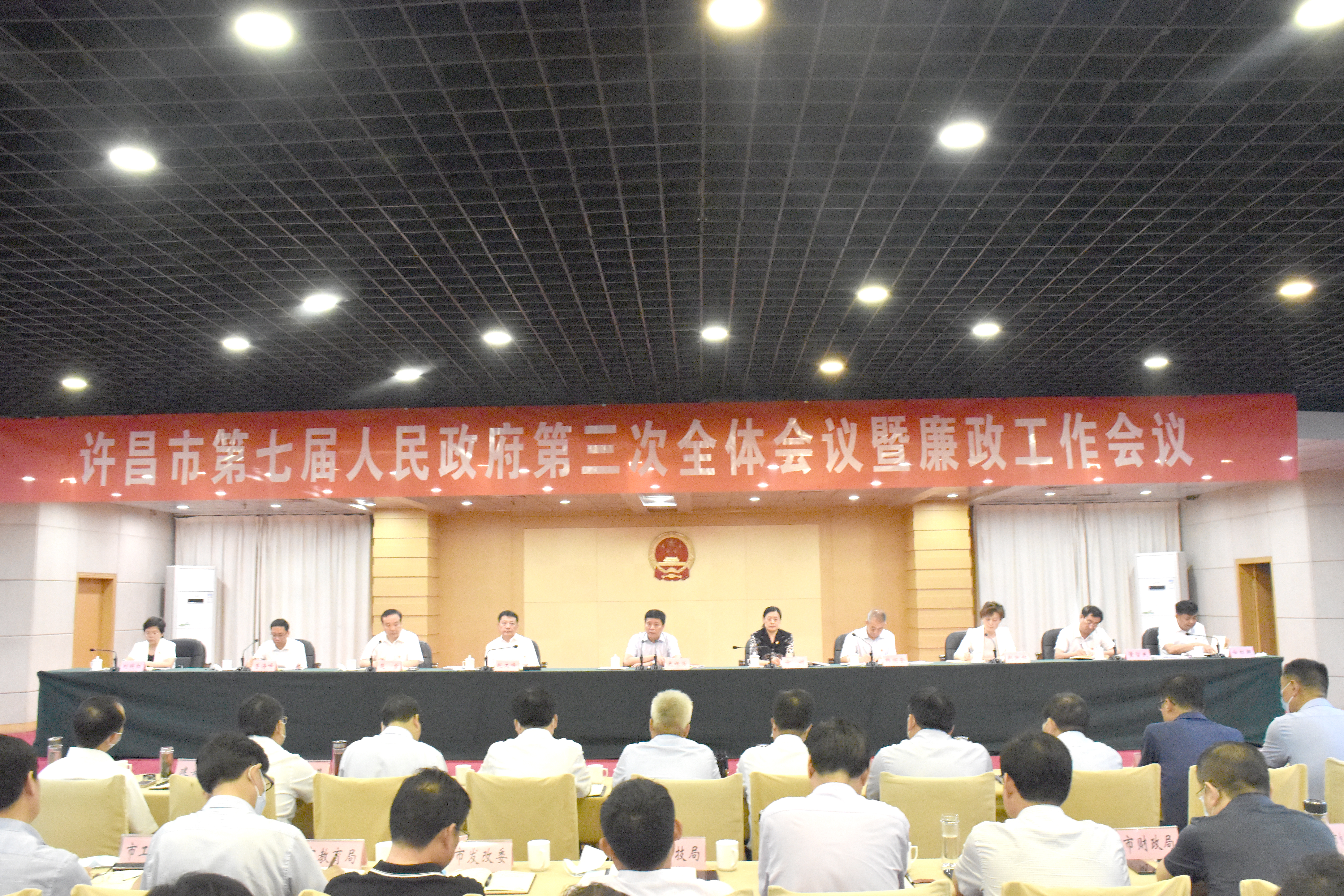 8月3日,许昌市第七届人民政府第三次全体会议暨廉政工作会议召开。市长史根治主持会议并讲话,动员全市政府系统大干三季度、决战四季度,全面落实“六稳”“六保”任务,深入推进党风廉政建设和反腐败工作,奋力完成全年各项目标任务。